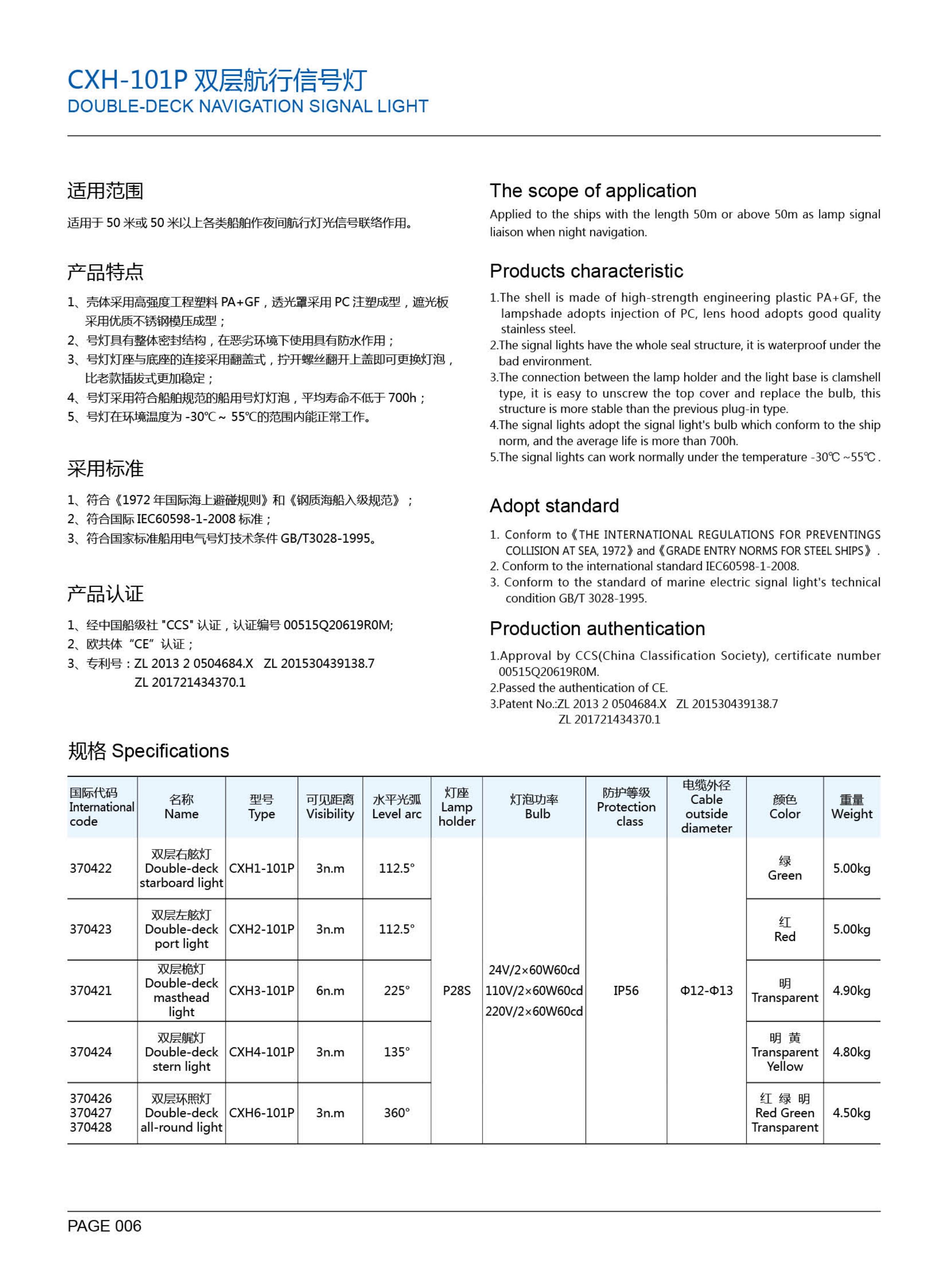 | 單層航行信號燈艉燈 | |||