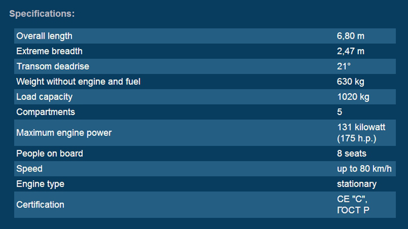 總長: 6.80m 航速: 44.5kn