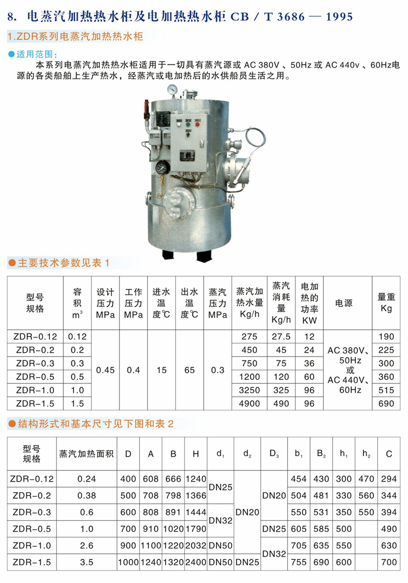 | 船用電蒸汽加熱熱水柜 | |||