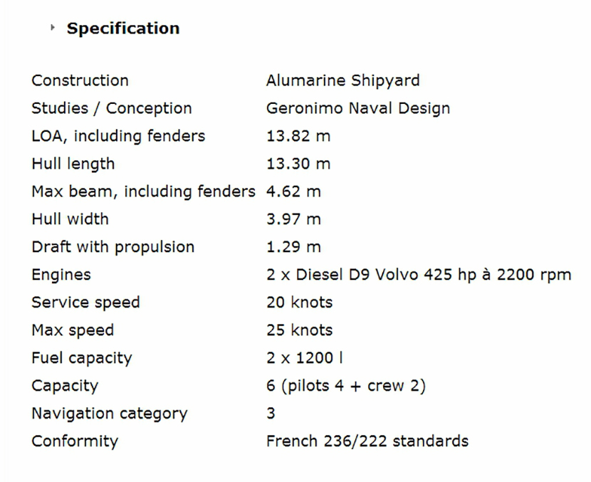 發動機功率: 2×425hp 型寬: 4.62m