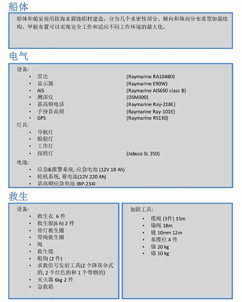 燃油容量: 500L 船組人員: 6P