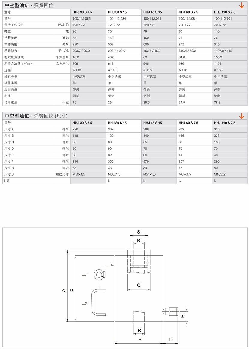 | 中空型彈簧回位油缸 | |||