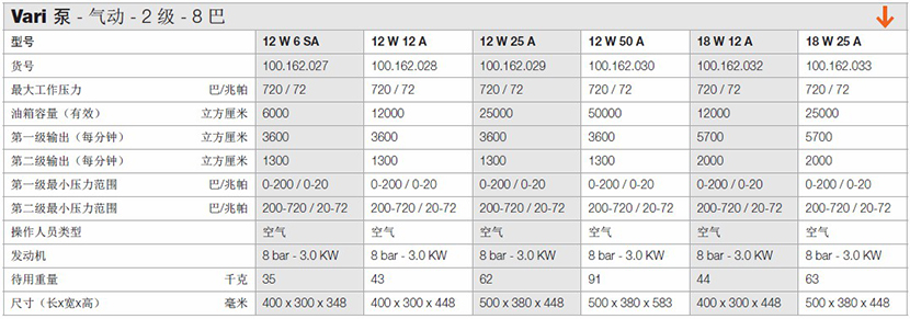 | 氣動2級8巴Vari泵 | |||