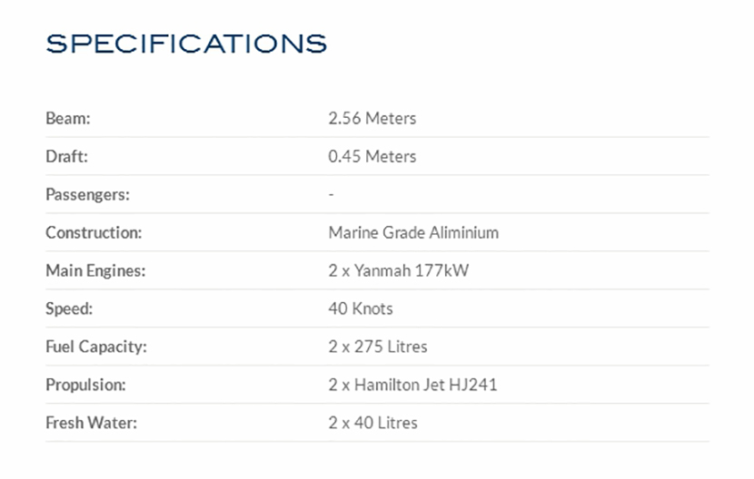 航速: 40kn 船體材料: