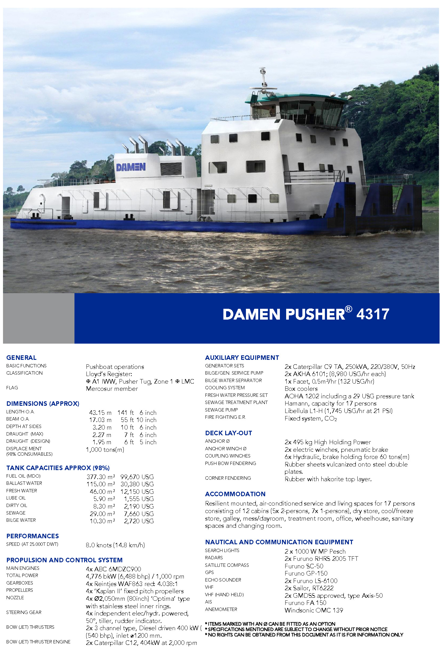 發(fā)動機功率: 4776bkW 推進裝置: 4×Kaplan II fixed pitch propellers