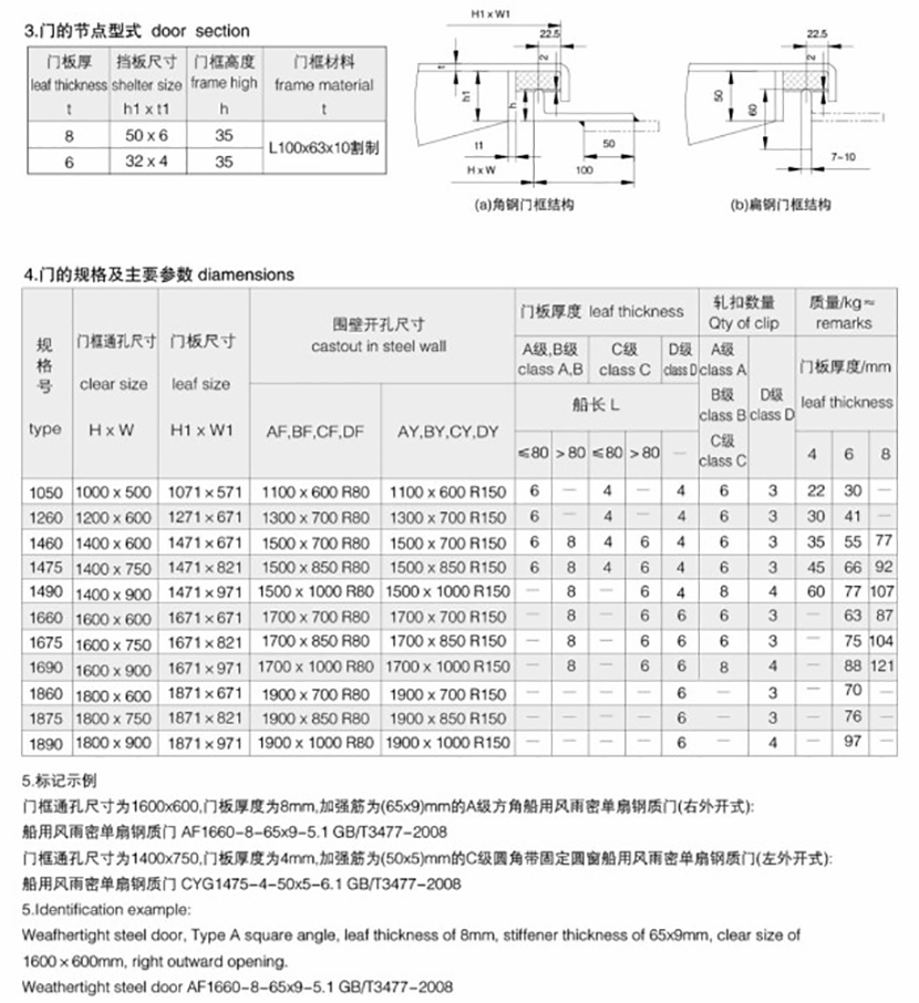 | 船用風雨密單扇鋼質門 | |||