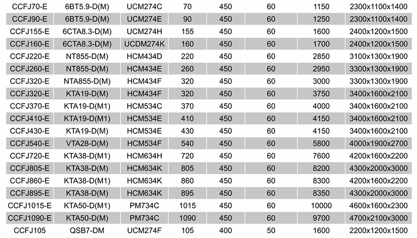 柴油機型號: KTA38-D(M)(M1) 發電機型號: HCM634K