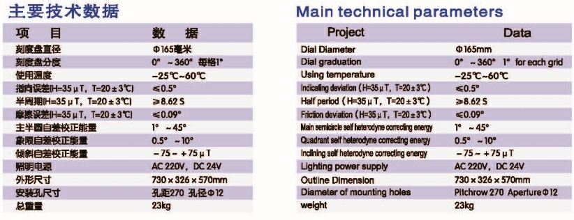 主半圓自差校正能量: 1°~45° 象限自差校正能量: 0.5°~10°