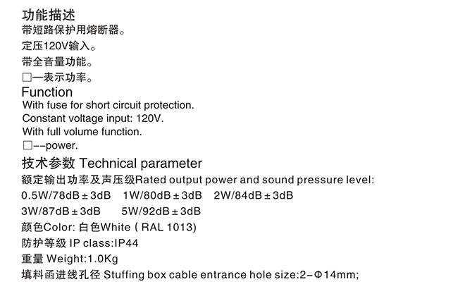 | 功率: | 3W | 聲壓等級: | 87dB |