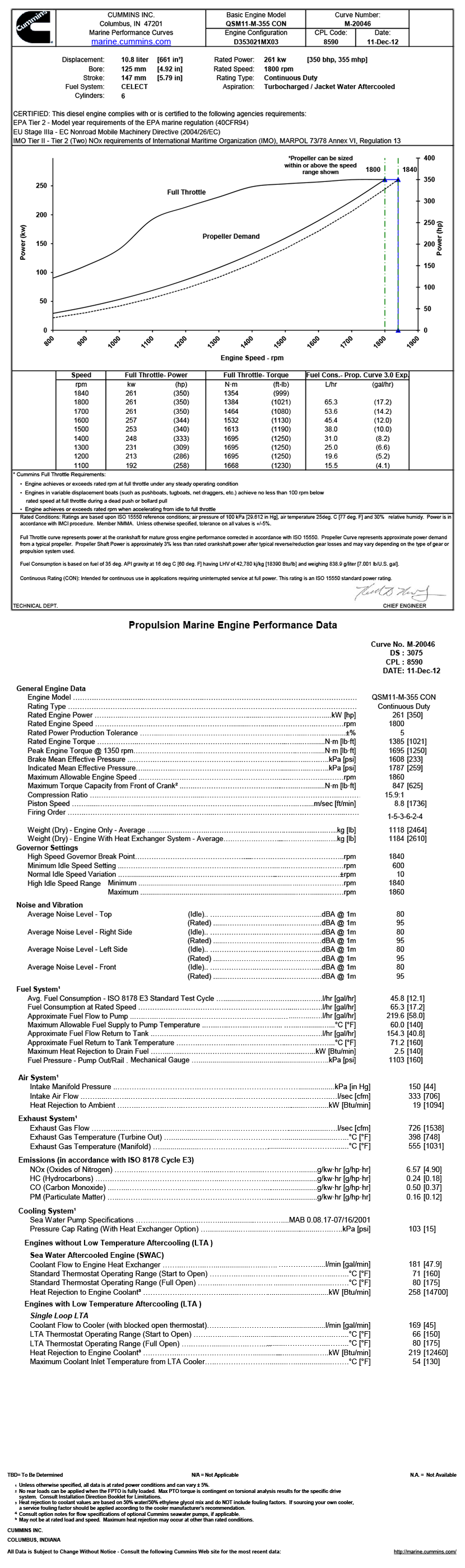 排放標準: EPA Tier 2-Model year requirements of the EPA marine regulation(40CFR94);EU Stage IIIa-EC Nonroad Mobile Machinery Directive(2004/26/EC);IMO Tier II-Tier2(Two)NOx requirements of International Maritime Organization(IMO),MARPOL 73/78 Annex VI,Regulation 13