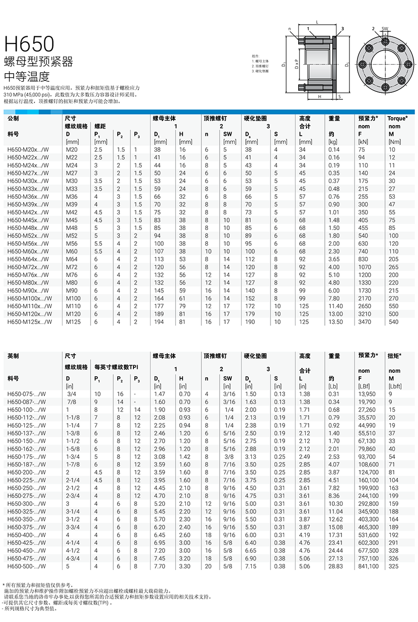 螺紋直徑(公制): 110mm 預緊力(公制): 2650kN