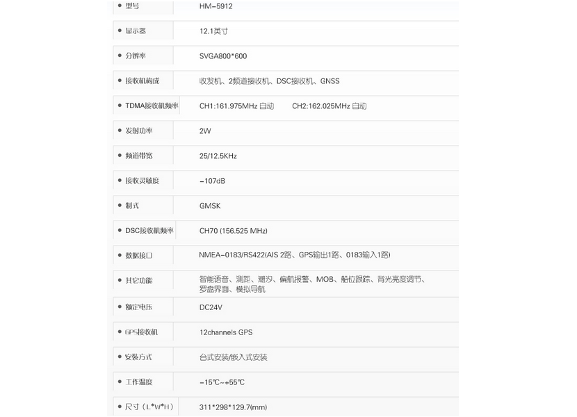 工作電壓: 24VDC DSC接收器頻率: CH70(156.525MHZ)