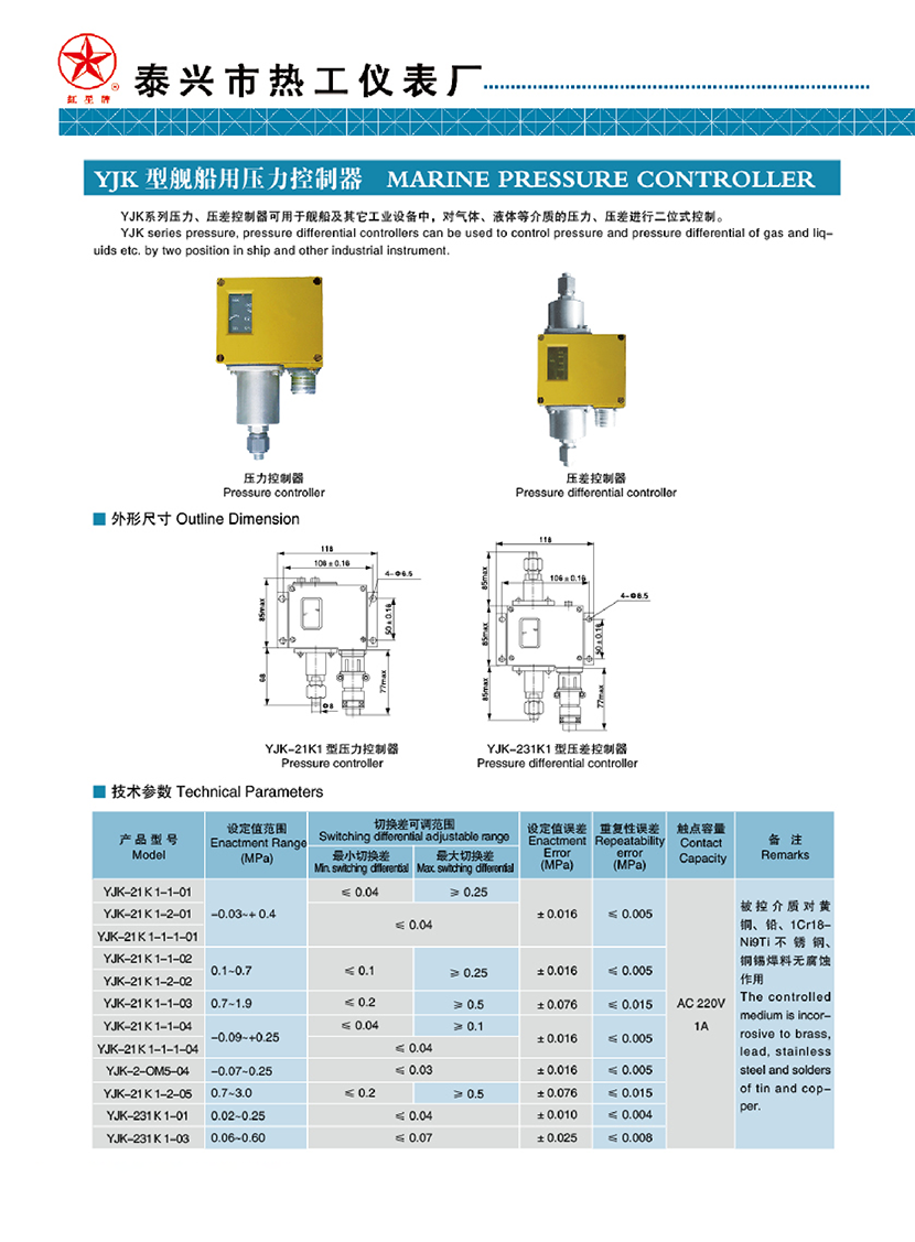 YJK型艦船用壓力控制器