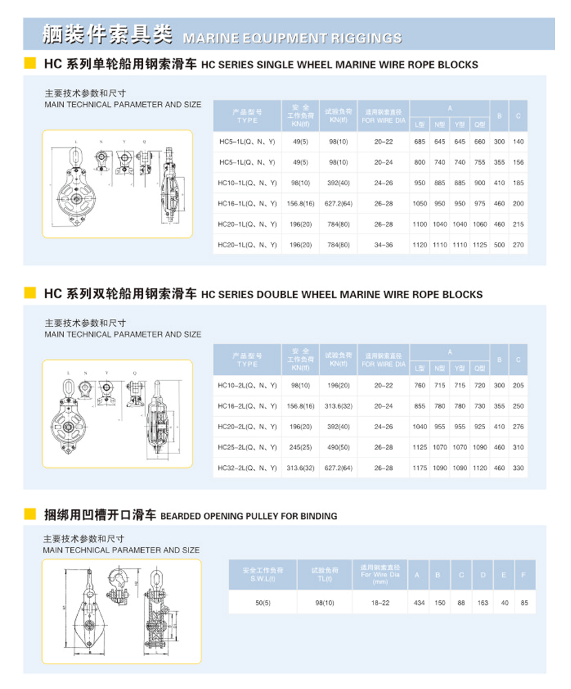 | 捆綁用凹槽開口滑車 | |||