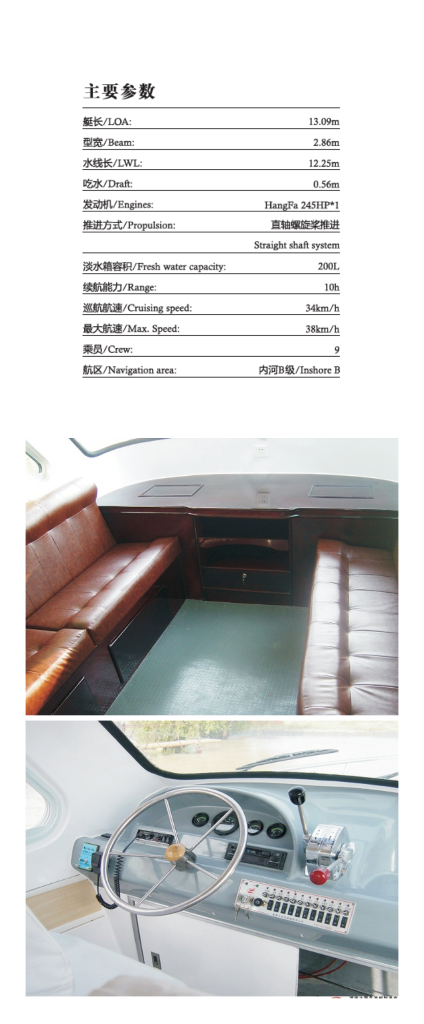 吃水深度: 0.56m 推進方式: 直軸螺旋槳推進