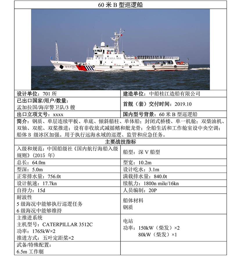 60米B型巡邏船