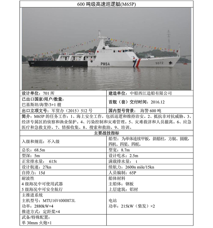 M65P 600噸級高速巡邏船