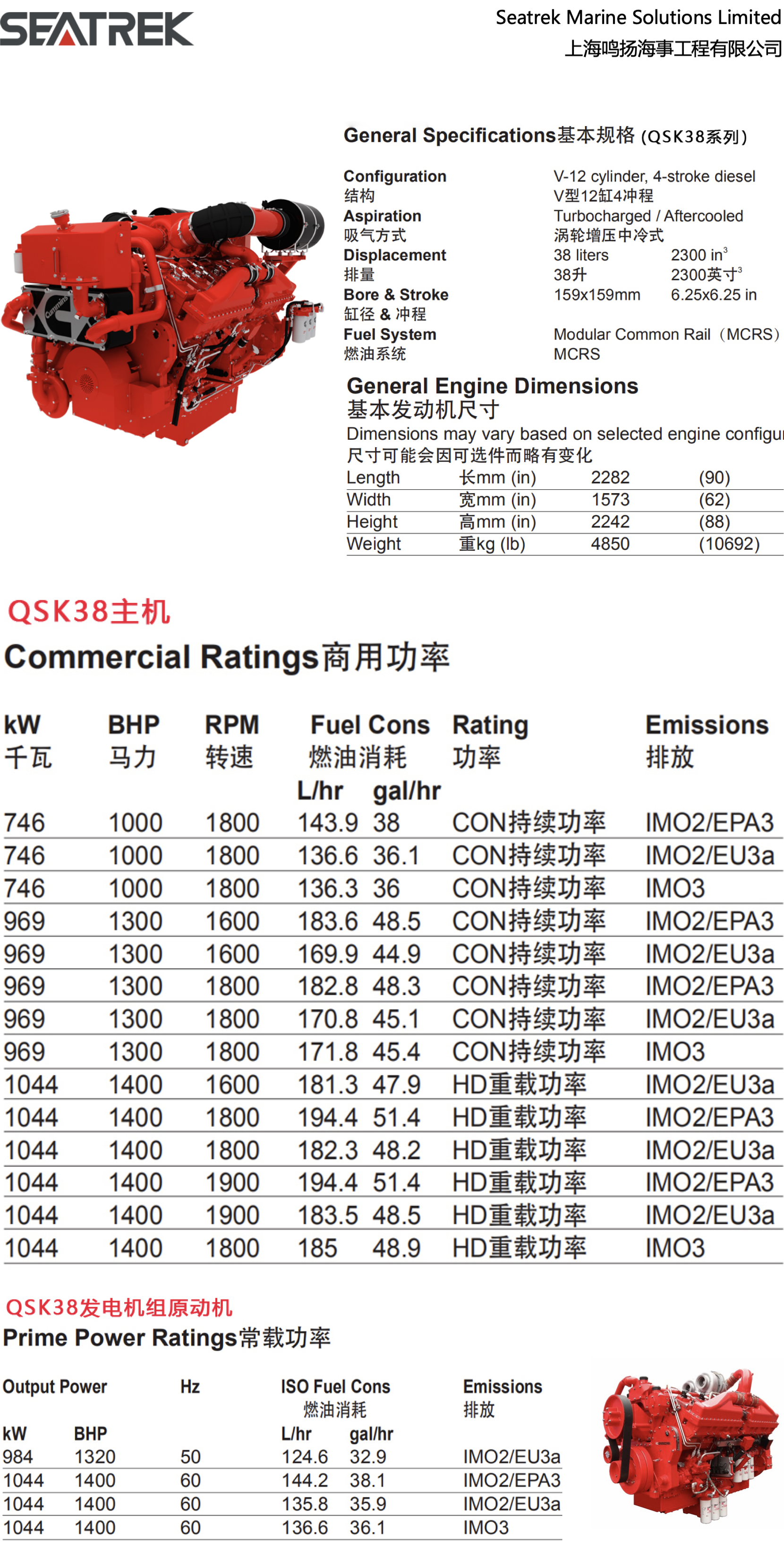 尺寸(長×寬×高): 2282×1573×2242mm 排放標準: IMO2/EPA3/EU3a/IMO3