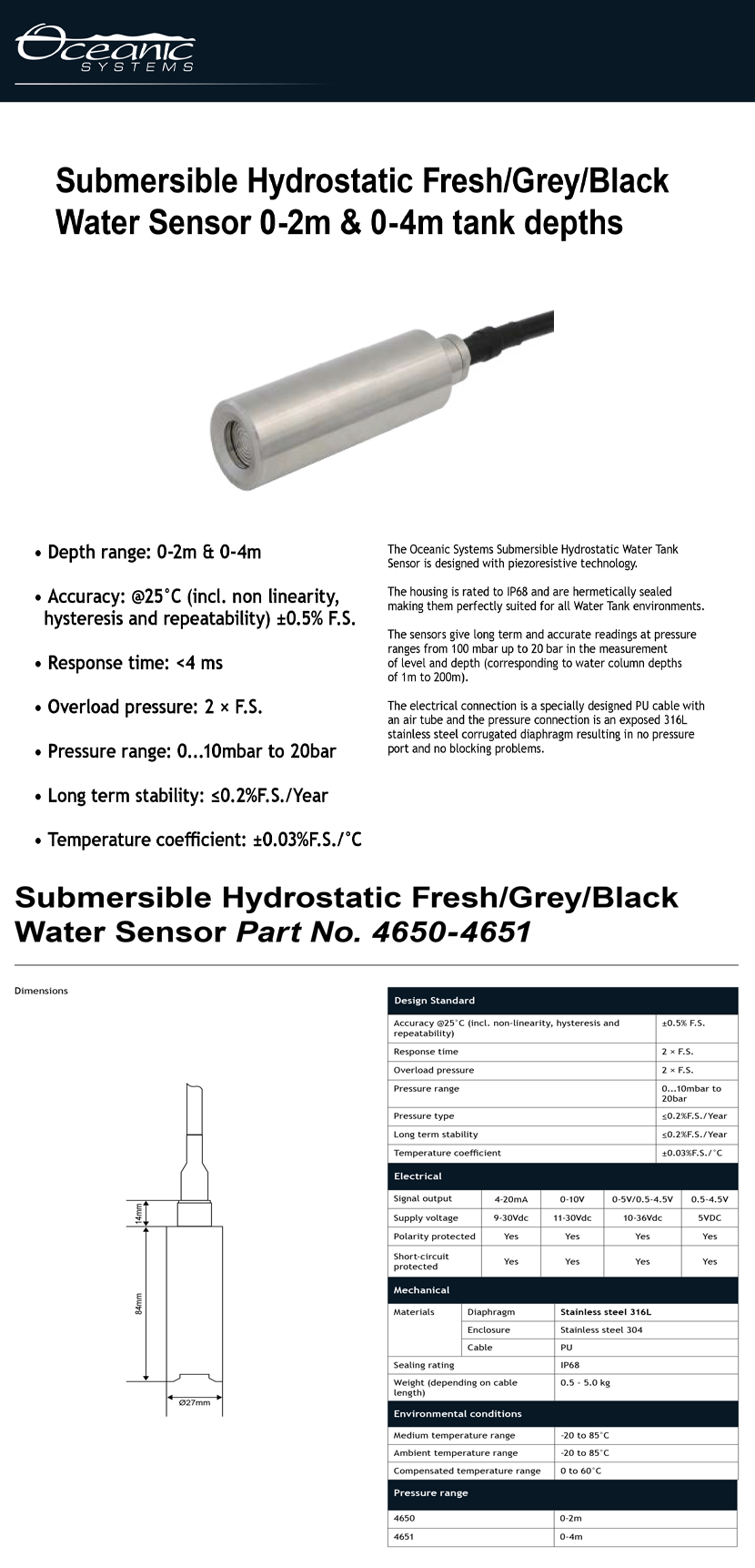 | 投入式清污水靜壓液位傳感器 | |||