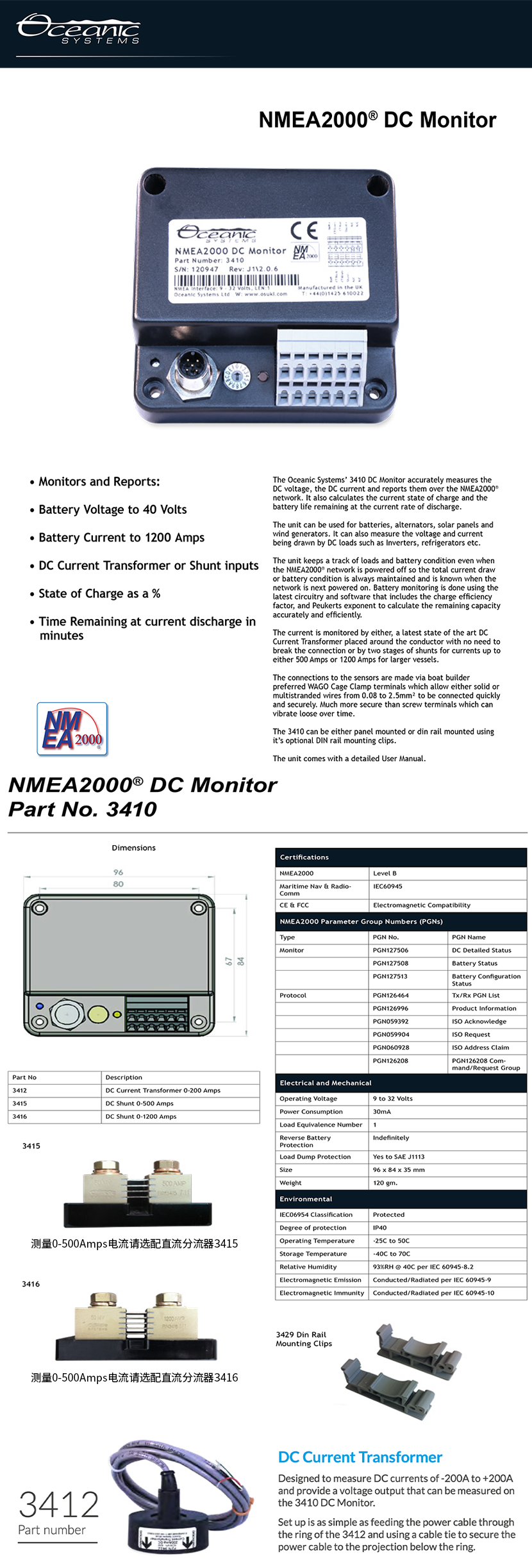 建議搭配: 直流電轉換器3412/直流分流器3415/直流分流器3416 防護等級: IP40