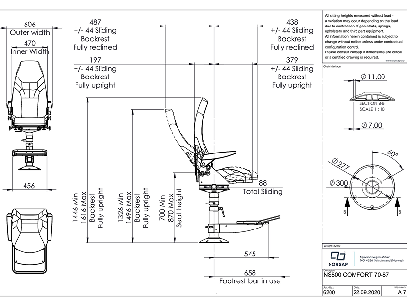 800系列輕便型高度可調船用座椅