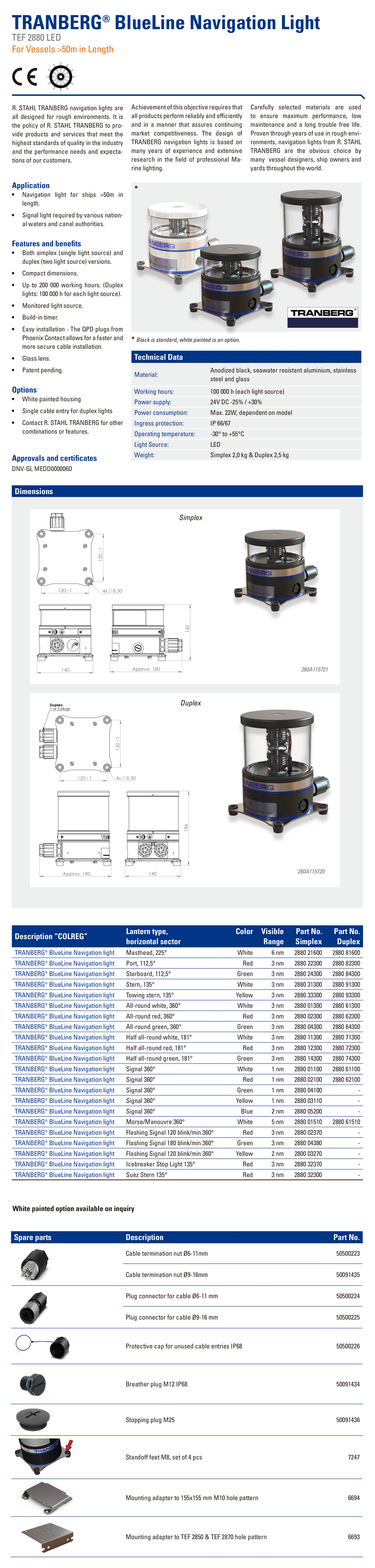材料: 黑陽極防海水氧化鋁;不銹鋼 防護等級: IP66/67
