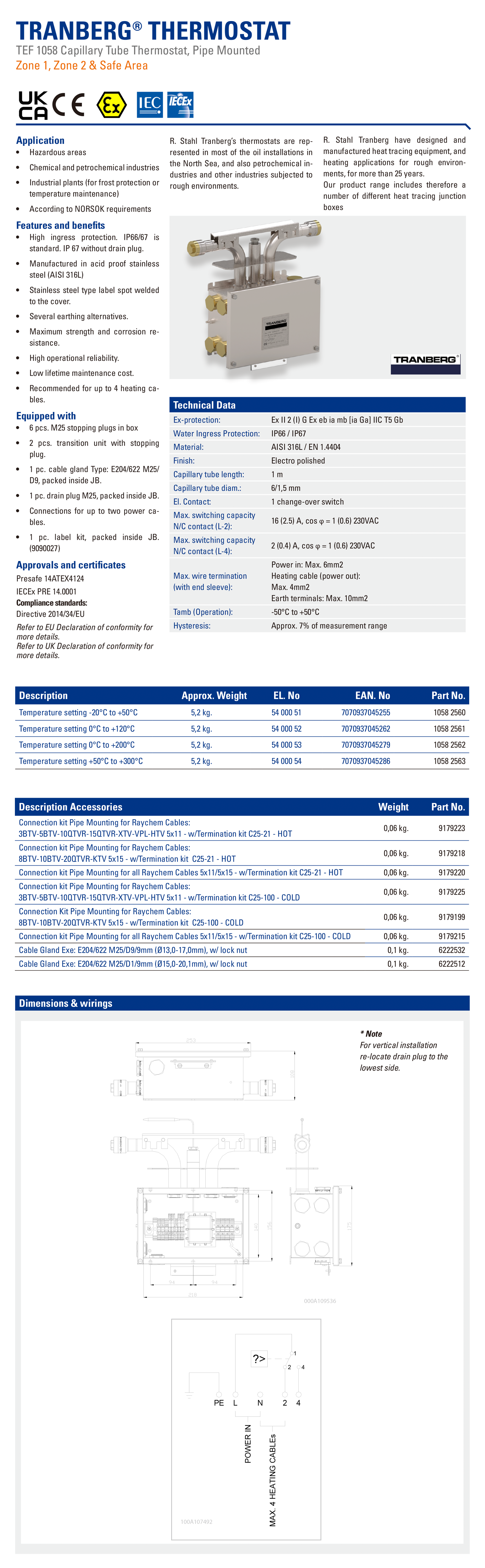 適用區域: 防爆1區/防爆2區/安全區 恒溫范圍: -20°C to +50°C